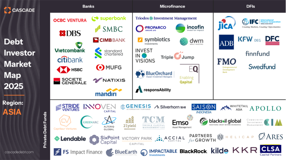 To help bring clarity to this dynamic and fragmented space, we’ve published the 2025 Asia Debt Investor Market Map, featuring banks, DFIs, microfinance-backed platforms, and private credit funds actively deploying capital across the region.
